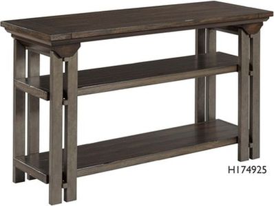 The Alexvale Synthesis Wood Console Table is crafted of rubberwood solids, metal and hickory veneers. Features a base shelf and tabletop with natural dark wood finish, supported by bold metal legs.Read More