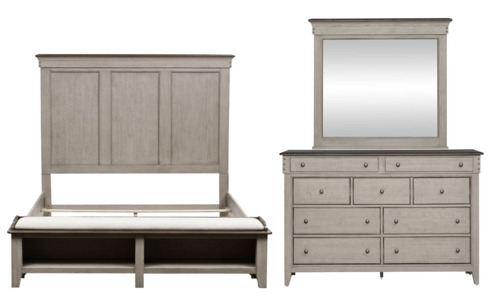 Create a relaxing retreat with the Ivy Hollow queen storage bed, dresser, and mirror. Inviting and inspirational, Ivy Hollow offers the farmhouse look and design style that works for cottage or contemporary and is more about creating a look that we love.Read More