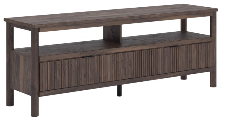 Crafted with both form and function in mind, this TV stand brings a dash of retro-cool character to your modern boho aesthetic. A reeded design on its drawers adds an on-trend touch to storing entertainment essentials. Warmly welcoming with a rich brown finish, the TV stand pairs well with muted hues, earth tones and other neutrals alike.Read More