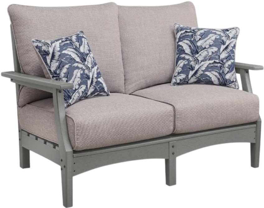 This outdoor loveseat prioritizes versatile style and comfort, all while providing the durability you need al fresco. Crafted of a sturdy, wood-lo ok material, it withstands the elements with ease. Cleanable and UV-resistant Nuvella® fabric rounds out the piece with added function.Read More