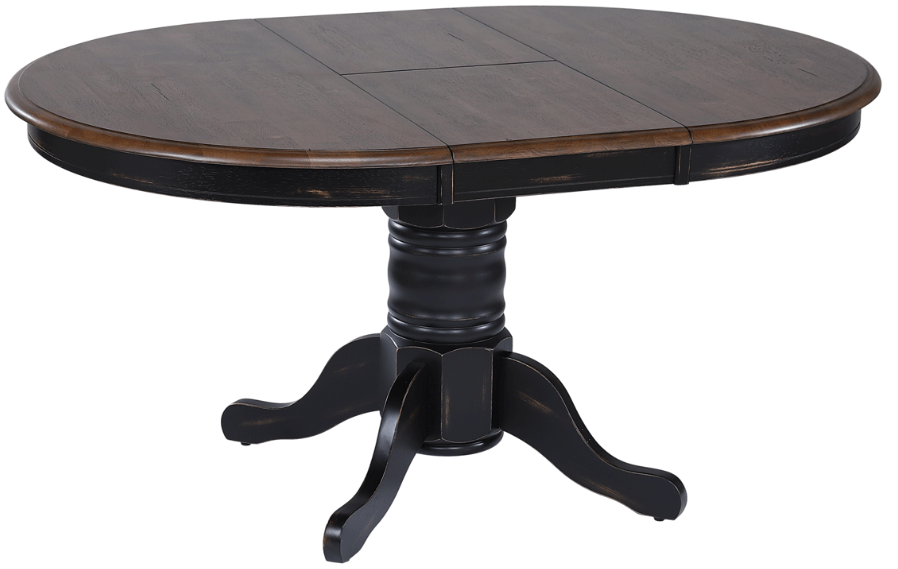 The TEI Country Cottage Chestnut Butterfly Leaf Dining Table with Black Base combines the warmth of a chestnut tabletop with a contrasting black base. The butterfly leaf feature provides flexibility for various dining needs, allowing for easy expansion. Its rustic charm and sturdy design make it a versatile addition to any home.Read More